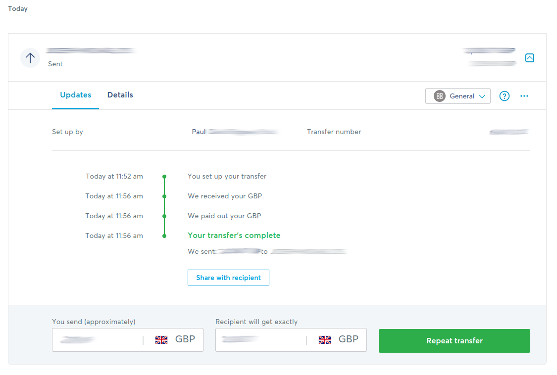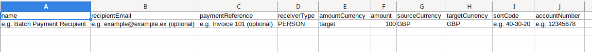 It is important for the "Amount currency" to be "Target currency" ("target" in the sheet), even though its GBP on both sides as this then also ensures the fee is on top rather than subtracted from the pay.