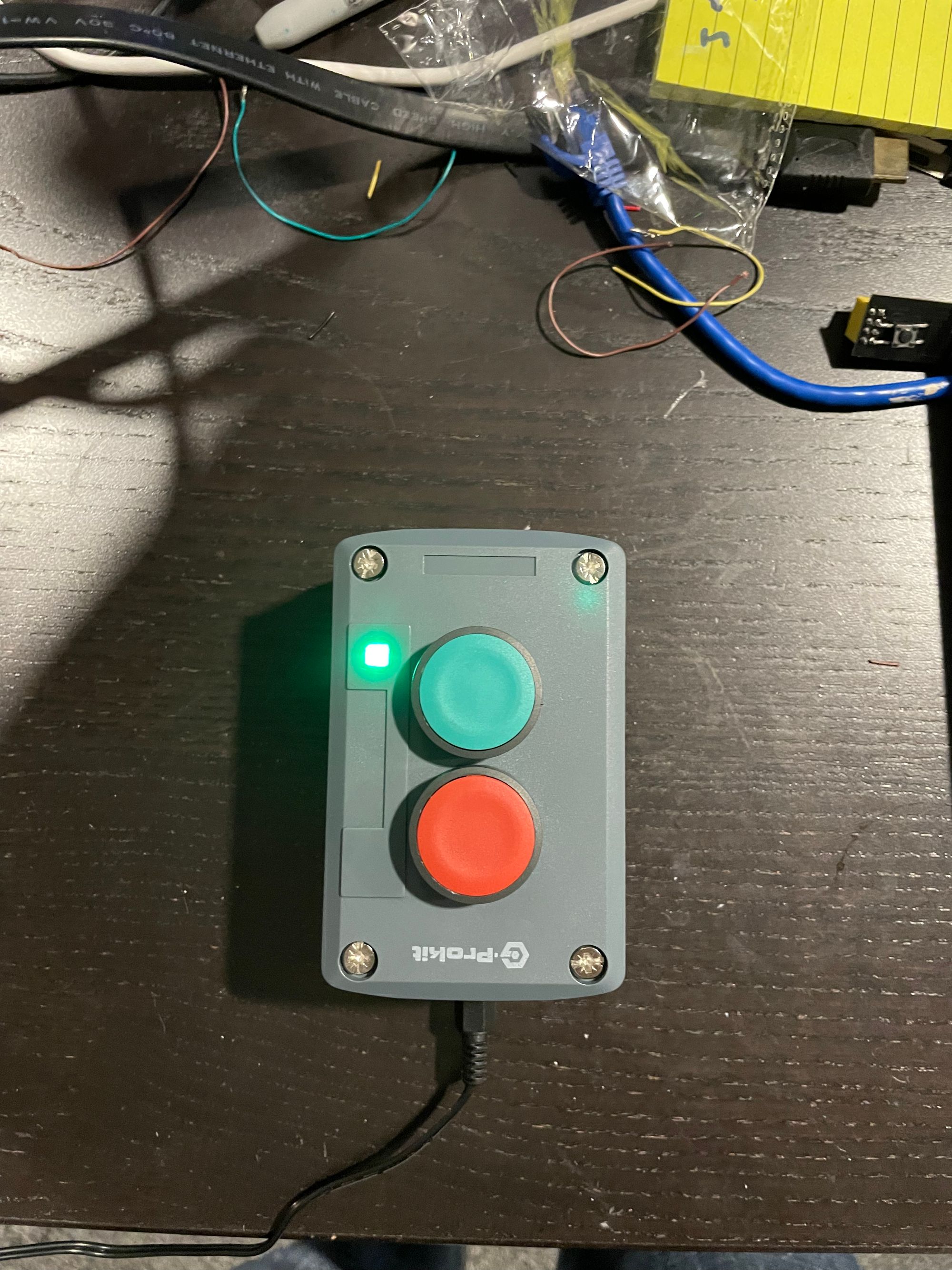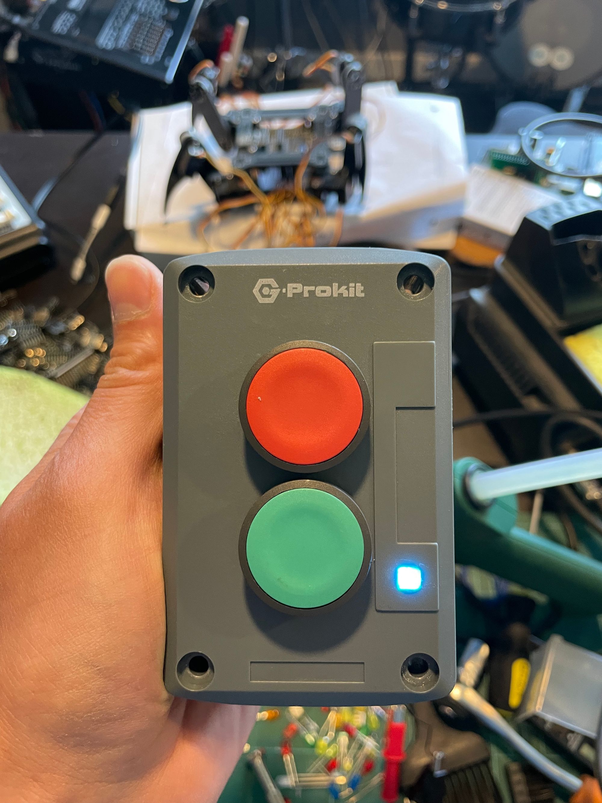 First is the enclosure, a G-Prokit IP65 2-way Red and Green Push Button Industrial Start/Stop Switch, Grey housing, door or gate release, Indoor or Outdoor use, waterproof (2-way Green/Red)