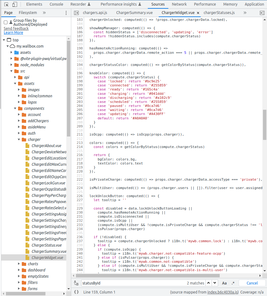 The Wallbox portal (my.wallbox.com) is a (Vue) Single Page Application (SPA).